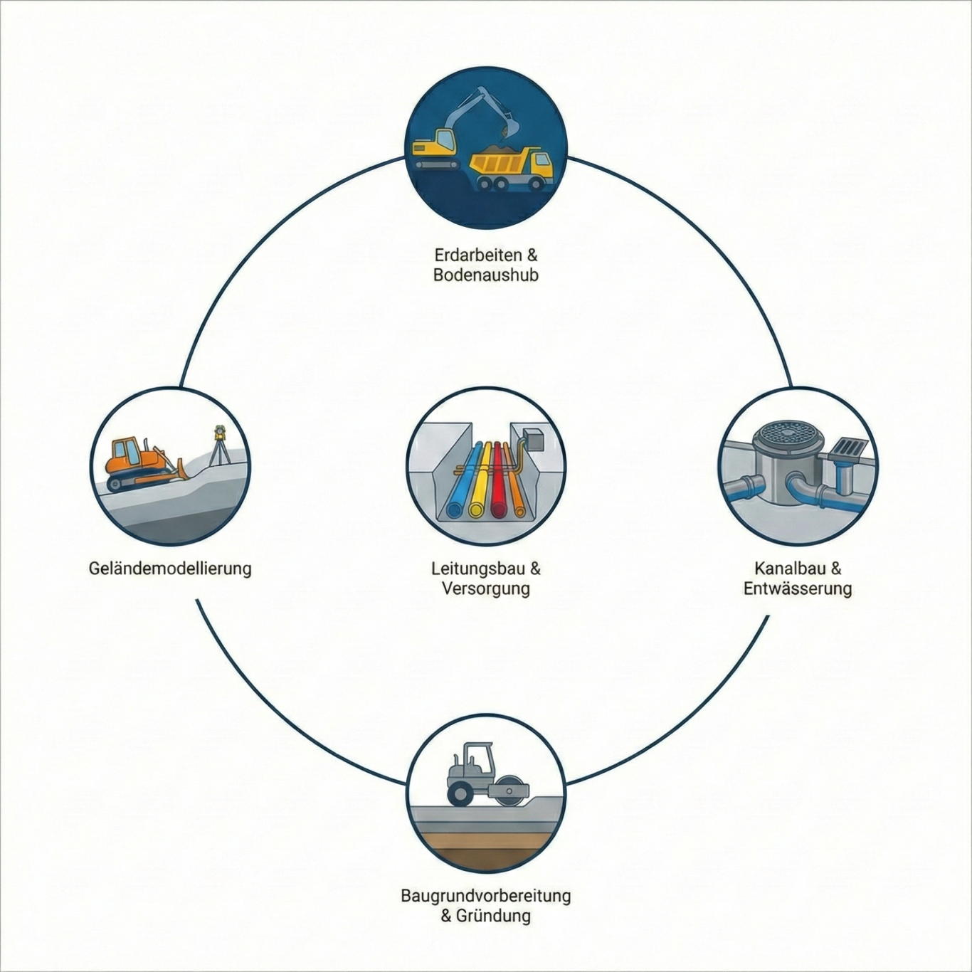✅ Koordination der Tiefbaumaßnahmen mit Architekten und Versorgern.